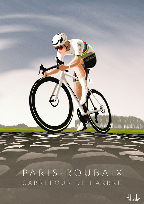 A Paris-Roubaix é uma das mais desafiadoras provas de ciclismo do circuito profissional, e não é a toa que é conhecida como "Inferno do Norte". Em 2024 foi vencida pelo neerlandês Mathieu Van Der Poel, que tem nesta arte a representação da sua passagem por um dos trechos decisivos em paralelepípedo, o Carrefour de L`Arbre.