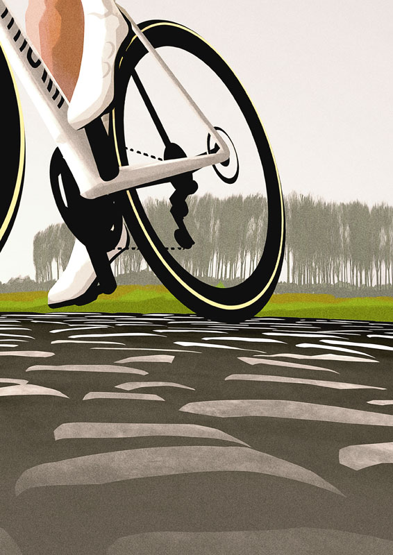 A Paris-Roubaix é uma das mais desafiadoras provas de ciclismo do circuito profissional, e não é a toa que é conhecida como "Inferno do Norte". Em 2024 foi vencida pelo neerlandês Mathieu Van Der Poel, que tem nesta arte a representação da sua passagem por um dos trechos decisivos em paralelepípedo, o Carrefour de L`Arbre.