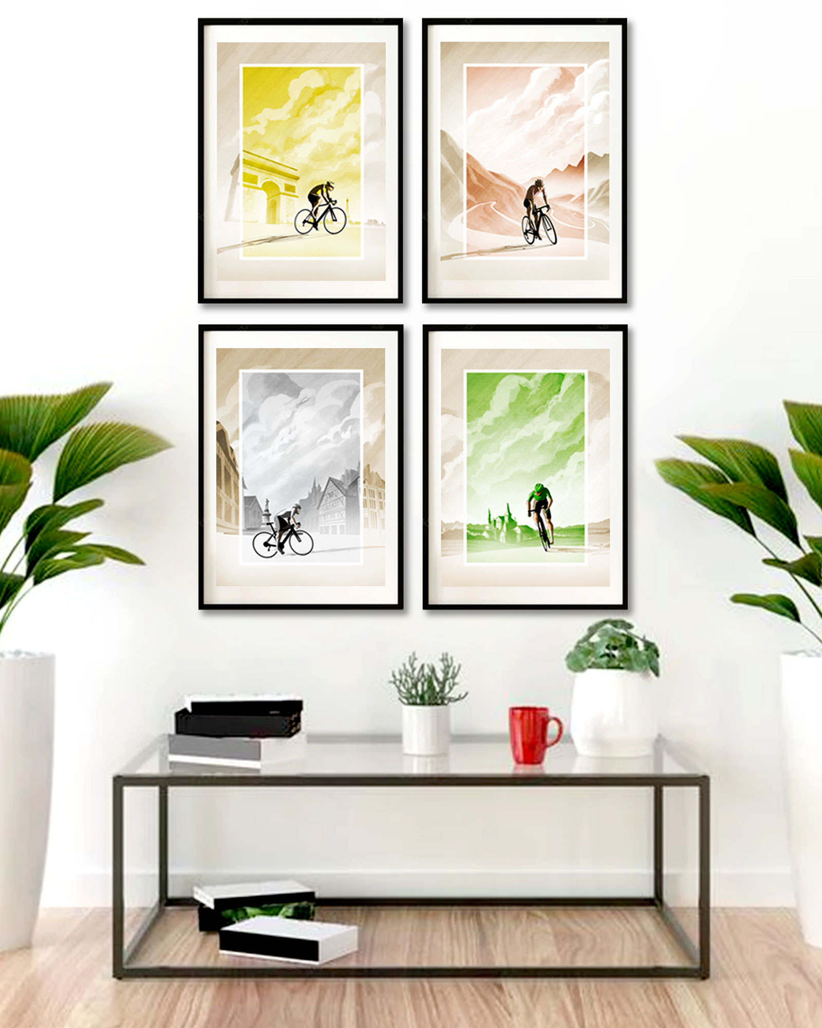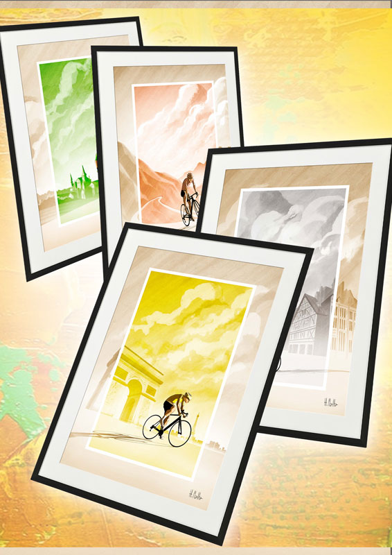 Esta série retrata as cores das jerseys usadas pelos campeões do Tour de France nas 4 divisões, representando também regiões icônicas do percurso conhecidas pela produção de vinhos.